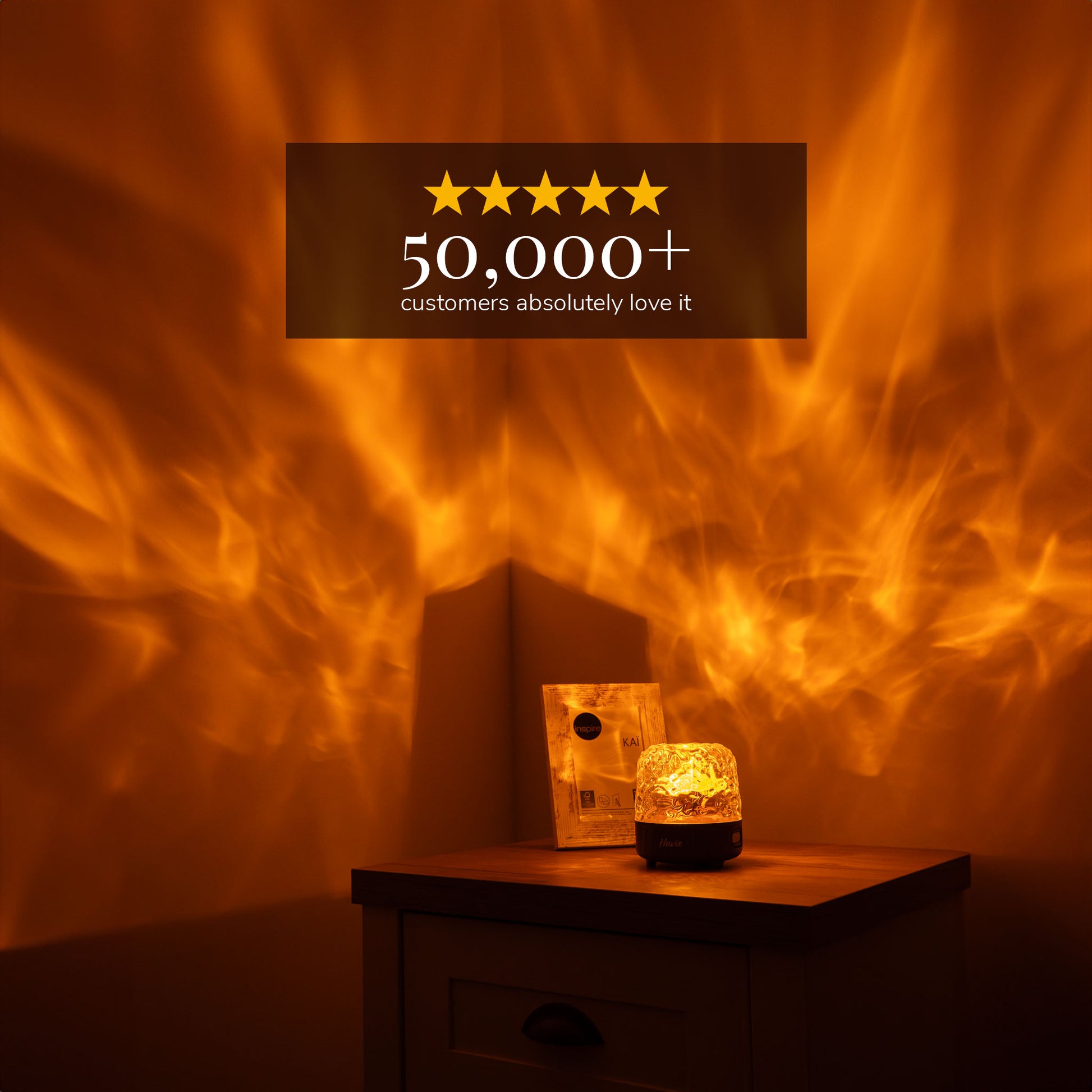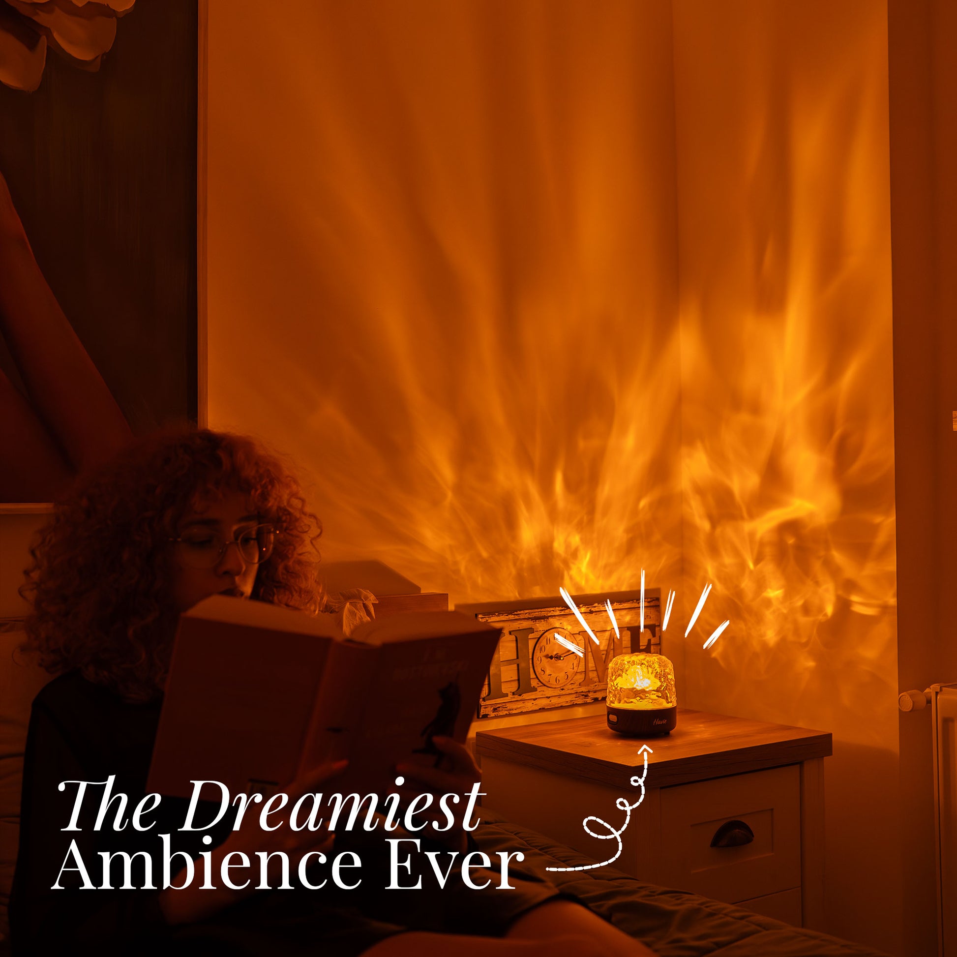 The Havie Lamp creates a warm, calming atmosphere with aurora-style projection lighting designed to enhance relaxation and mood. Its gentle glow is ideal for evening use, cozy spaces, and winding down at night.