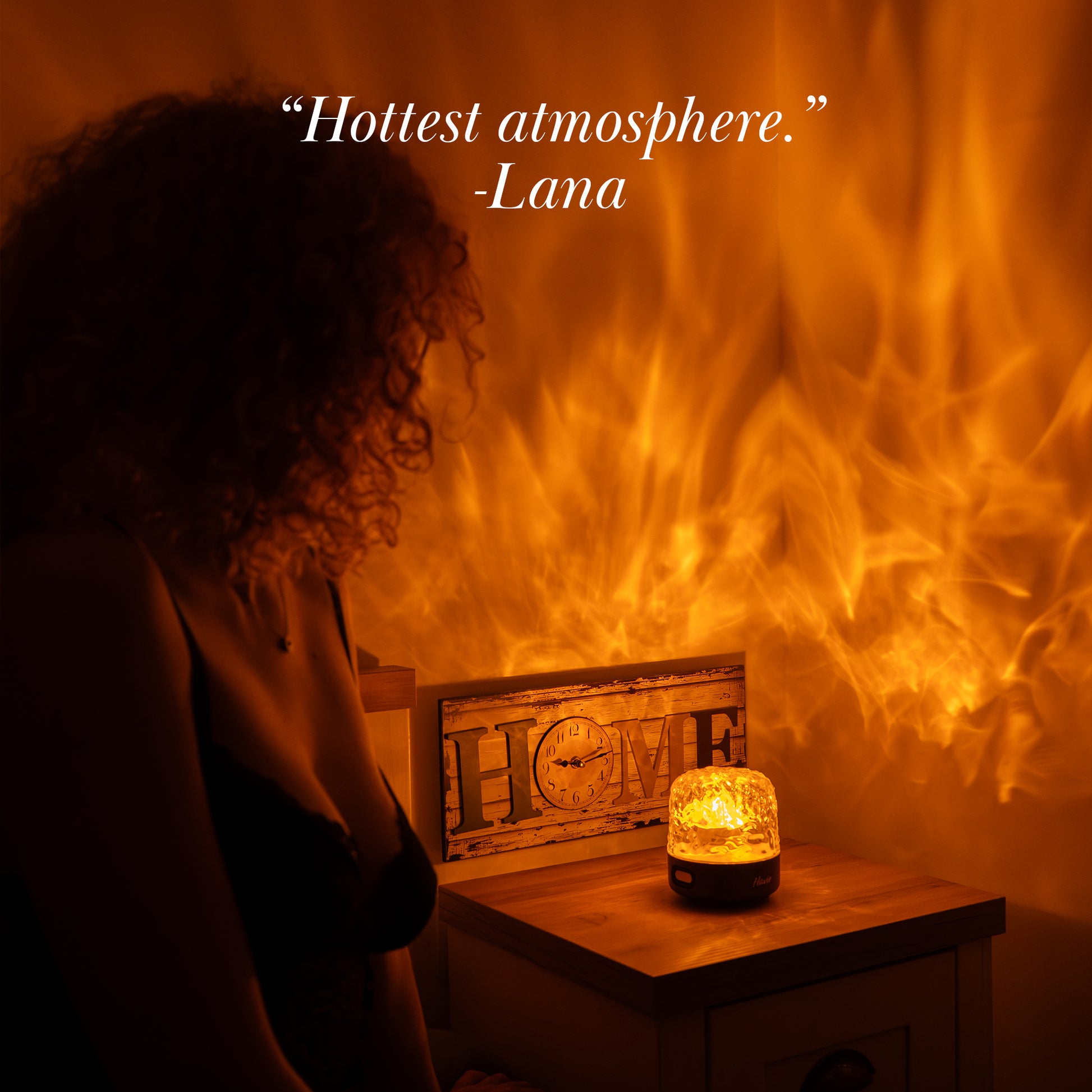 Aurora Projection – Fill your space with soft, dreamlike light that wraps you both in warmth.
